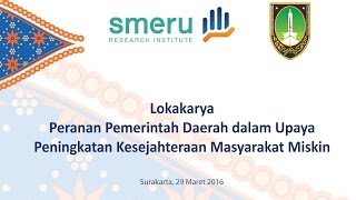 Pemerintah Kota Surakarta bekerjasama dengan The SMERU Research Institute menyelenggarakan lokakarya dengan tema ?Peranan Pemerintah Daerah ...